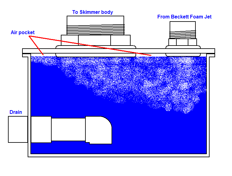 I made a two changes to the skimmer after the build one was mentioned: The upsizeing of the outlet bulkhead from 1" to 1.5". The second is the addition of a bubble path tube from the foam jet inlet to the base of the skimmer body.