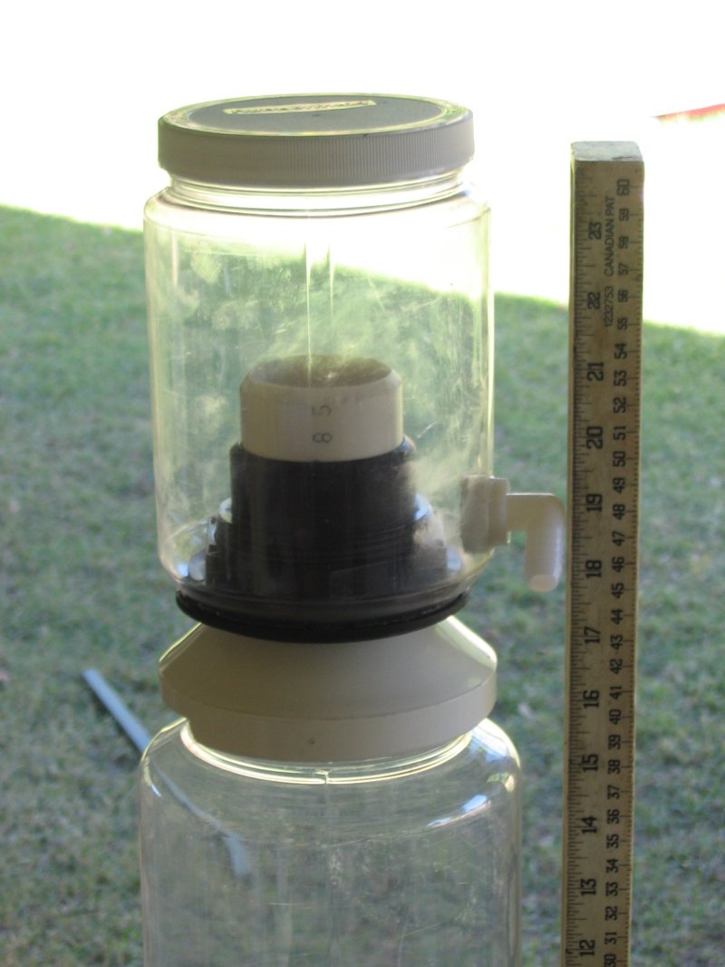 In this design, the riser tube is not adjustable. The collection cup can raise or lower on this riser tube but the height of the tube is constant. The height of the water column is controlled instead using the gate valve on the outlet drain. The collection cup could be permanently attached to the riser tube. I didn't glue mine. I don't think I glued the riser tub into the taper fitting either. I really don't glue anything I don't have to.